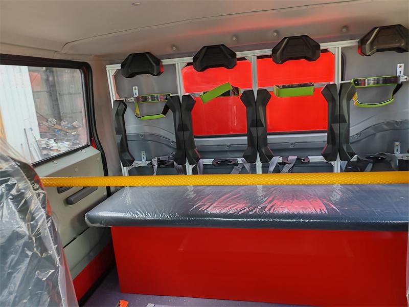 E Deposito attrezzature: il vano attrezzature anteriore è dotato di una porta avvolgibile in lega di alluminio completamente chiusa, che consente di riporre in modo organizzato varie attrezzature antincendio, come manichette antincendio, asce antincendio, pale, picconi, estintori, tute antincendio e ponti per manichette, facilitando l'accesso rapido ai vigili del fuoco.