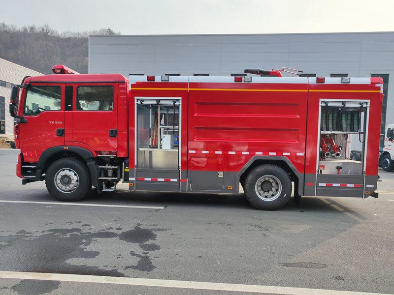 tanker material PP, 4X4, 6X6 drive, RHD driveAutopompa con schiuma POWERSTAR 8000L HOWO è un veicolo antincendio ad alte prestazioni, costruito sul telaio SINOTRUK HOWO ZZ5207TXFV471GF5, alimentato da un motore diesel da 350 CV abbinato a un cambio manuale a 8 marce. Il suo serbatoio di grande capacità da 8000 litri è composto da un serbatoio dell'acqua in acciaio al carbonio da 6000 litri e da un serbatoio della schiuma in acciaio inossidabile da 2000 litri. Il camion è dotato di una pompa antincendio CB10/60 e di un cannone schiumogeno PL8/48, che erogano un getto d'acqua di oltre 70 metri e un getto di schiuma di 60 metri. Combinando prestazioni potenti, grande capacità di liquido e facilità d'uso, questo Autocisterna dei pompieri HOWO Dotato di cabina estesa per un maggiore comfort. Adatto a impianti petrolchimici, siti industriali, comunità e porti, estingue efficacemente incendi di origine oleosa e convenzionale, il che lo rende la scelta ideale sia per la lotta antincendio urbana che per applicazioni industriali.