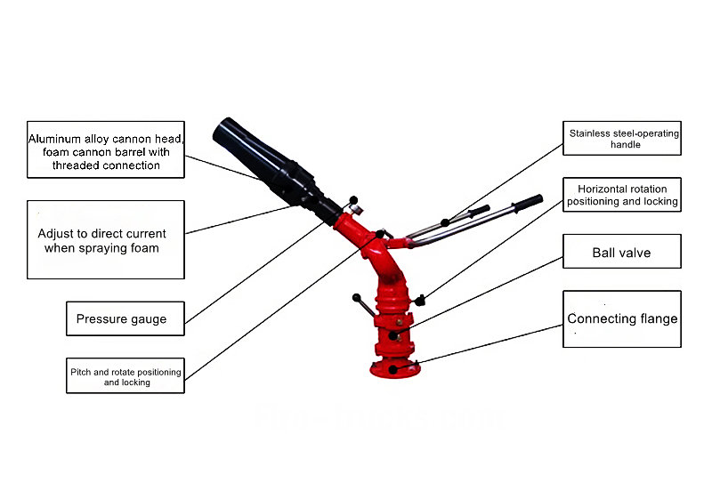 Il cilindro schiumogeno può essere rimosso per essere utilizzato come monitor antincendio, offrendo sia funzioni di scoppio che di corrente continua. Cannone a schiuma per camion dei pompieri PL24 è adatto per autopompe e applicazioni nei settori petrolifero, chimico e portuale.