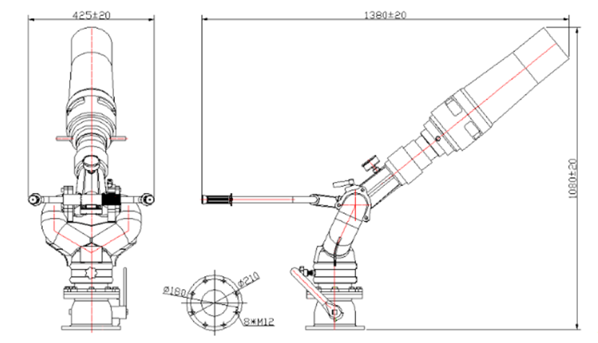 | Modello di monitor antincendio | Fluire | Allineare | Pressione nominale | Rotazione del passo | Rotazione orizzontale | Peso |