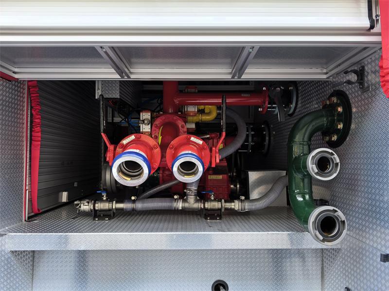 La sala pompe posteriore è dotata di una pompa antincendio CB10/60-RS e di un pannello di controllo. Un monitor antincendio PL8/48 è montato sul tetto, offrendo un'ampia portata, un'ampia copertura e un'angolazione regolabile. Questo veicolo antincendio integra funzioni antincendio e di soccorso ed è particolarmente adatto allo spegnimento di incendi di Classe B, come gli incendi da olio combustibile, il che lo rende un'attrezzatura fondamentale per garantire la sicurezza urbana e industriale.