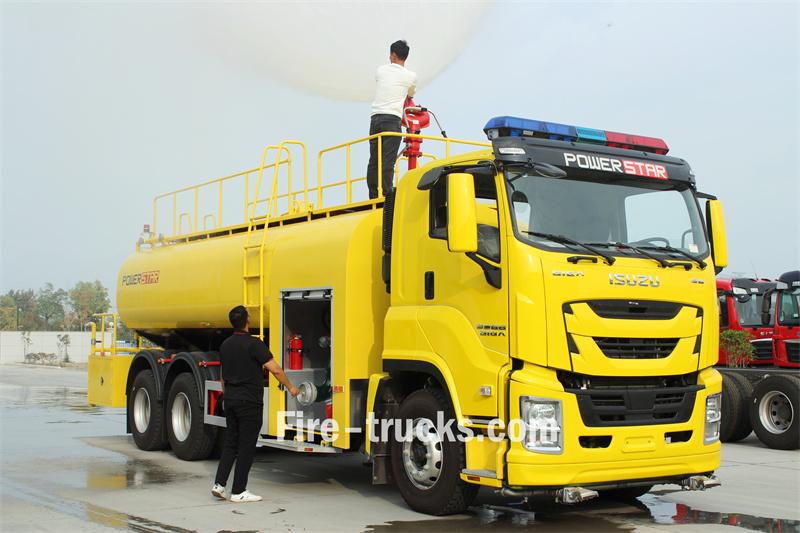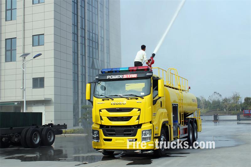 L'autocarro antincendio Isuzu 12000L utilizza un telaio Isuzu FVZ GIGA 6X4 con passo 4650+1370 mm. È equipaggiato con un motore Isuzu 6HK1-TCG60 e un cambio FAST a 9 rapporti. La parte anteriore della sovrastruttura ospita la sala pompe, che contiene una pompa antincendio CB10/60-RS e un pannello di controllo. Dietro la sala pompe si trova un serbatoio d'acqua in acciaio al carbonio da 12 metri cubi. La parte posteriore è dotata di una piattaforma di lavoro con cassetta degli attrezzi, irrigatori laterali, una scala sul retro del serbatoio, un indicatore di livello, irrigatori sul lato destro, un parapetto superiore rimovibile e un monitor antincendio PS8/50W.