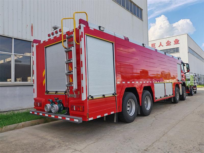 L'autopompa HOWO 8x4 con schiuma è un grande veicolo di soccorso di emergenza costruito su un telaio per impieghi gravosi SINOTRUK HOWO, che integra un serbatoio dell'acqua, un serbatoio di schiuma, una pompa antincendio e varie attrezzature antincendio e di soccorso. Alimentato da un motore da 460 CV, è dotato di un serbatoio dell'acqua da 20.000 litri e di un serbatoio di schiuma da 4.000 litri, ed è dotato di un monitor antincendio ad alta portata in grado di spruzzare acqua o schiuma fino a 75 metri. Grazie alle prestazioni potenti, all'eccellente mobilità e all'equipaggiamento completo, affronta efficacemente le attività di estinzione incendi in aree urbane e industriali.