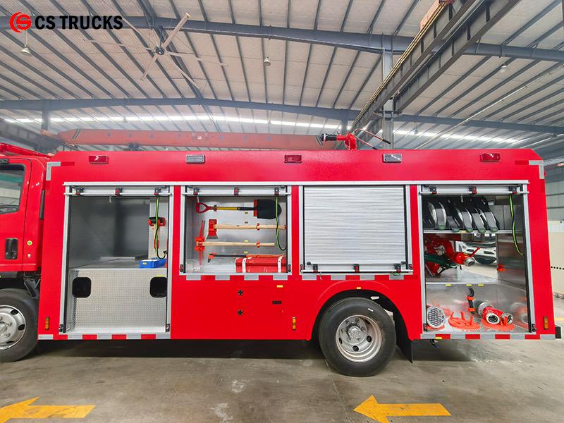 L'autopompa antincendio ISUZU 4000L è equipaggiata con un motore 4HK1-TC da 175 CV, costruito su un telaio ISUZU 4×2. Il serbatoio dell'acqua da 4.000 litri è posizionato dietro la cabina, mentre la pompa antincendio CB10/30-RS (30 l/s a 1,0 MPa) è installata nel vano pompe posteriore. Il monitor a tetto PS8/30W garantisce una gittata d'acqua di almeno 60 metri, coprendo un angolo di 360° in orizzontale e da -35° a 70° in verticale. I vani portaoggetti su entrambi i lati offrono spazio per manichette antincendio, tubi di aspirazione e attrezzature di soccorso, con tutti gli accessori standard inclusi.
